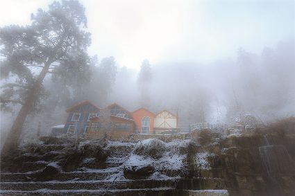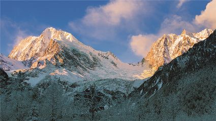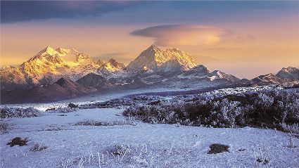 在一片片雪花的飄落中,冬天來(lái)了,它帶著風(fēng)、帶著雪,帶著讓人不禁要裹緊衣服的寒冷來(lái)了,萬(wàn)物在冬的腳步中慢慢俯下身子貼緊了大地。蕭索、蒼涼、千里冰封、萬(wàn)里雪飄……在這些形容冬天的詞語(yǔ)里,我們看到的是只有黑白兩色的畫面,黑的是物,白的是雪。但是,在甘孜州,冬天卻是色彩繽紛的,不僅有白的雪,還有藍(lán)的天、綠的水、黃的樹(shù)、紅的葉……還有炊煙升起的藏寨、水汽氤氳的溫泉和日照金山的美麗景致。