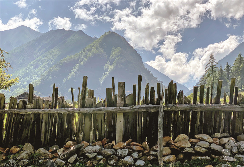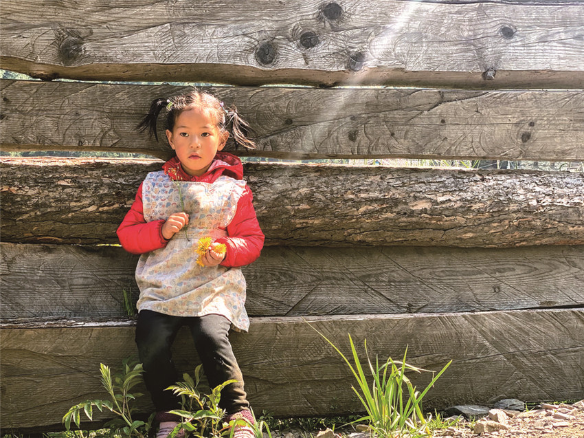 女人們相約去后山林中撿野生菌。一位穿氆氌袍子的老牧人領(lǐng)著小孫女,還有一只勇猛地藏獒,在石屋后方的草坪上等太陽。微風(fēng)輕拂著他們腳邊盛開的鳶尾花,細聽,那鈴鐺般的花朵搖響嘶嘶桑桑的音樂。小女孩在花叢中那條伸向牧場的小路上撿拾白色的小石子,裝入衣包里,鼓脹后就取出一枚枚投向花叢中的黑蝴蝶,令它的世界撲朔迷離。老牧人瞇縫著眼睛,翻轉(zhuǎn)粗糙的手心手背,仿佛要使它也開出鳶尾花朵來。我朝他們走去,小女孩朝我跑來,撲進我的懷中喊我阿尺。我撫摸她頭頂上的卷發(fā),像撫摸著一只乖覺的小鹿。