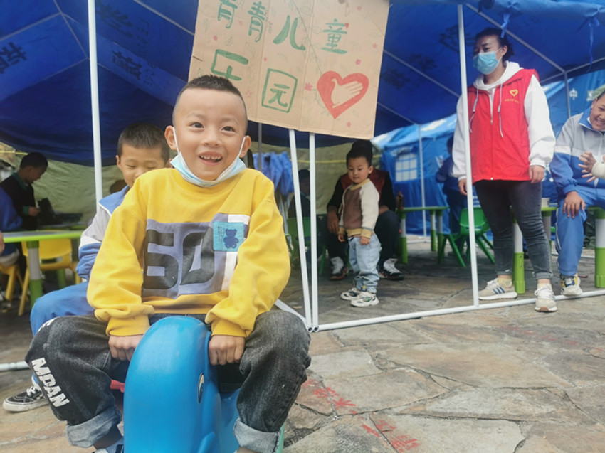當前,雖然余震還時有發(fā)生。但在災區(qū)的各安置點,在臨時搭起的帳篷里,隨處可見孩子們天真的笑臉。突如其來的災難給他們的家園留下了印記,但不能阻擋笑容在他們臉上綻放。有孩子,有笑容,就有希望,就有美好的明天。
