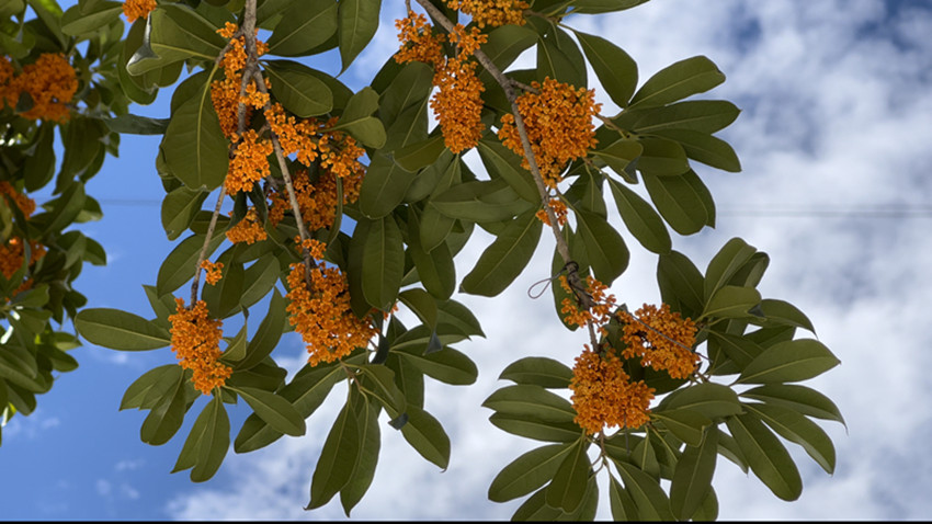 無間纏綿的秋雨后,漫步在巴塘的街道,悠悠的一股香氣沁入心扉。此時,頭頂?shù)乃{天,云卷云舒,嬌小的丹桂掛在樹梢枝頭輕輕搖曳,花香詩意相融于高原江南別有意趣。
