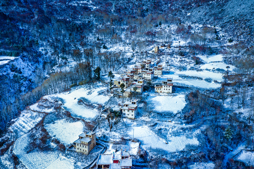 紛紛揚揚落下的雪,覆蓋在斑斕的彩林上,被太陽一曬,格外好看,來丹巴,享受愜意的暖陽吧!