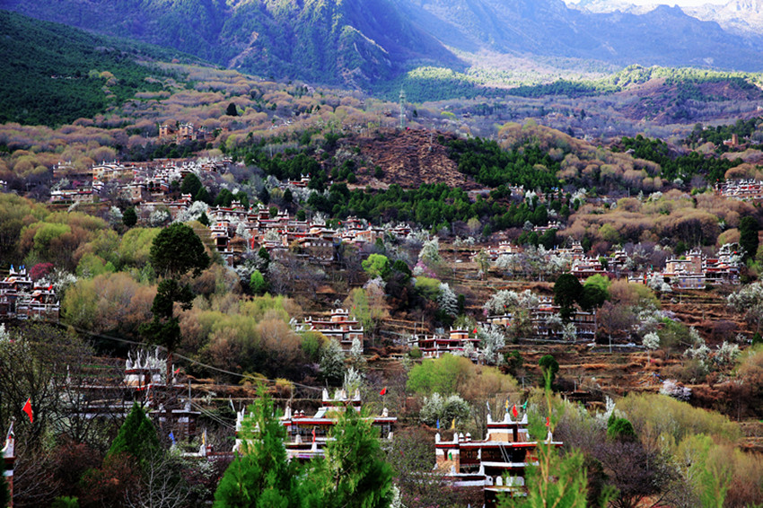 雪山、碉樓、藏寨、美人共同勾勒出一幅精美絕倫的春日藏寨梨花圖。春日里的梨花造就了丹巴的“三絕”?!耙唤^”即梨花配藏寨;“二絕”即梨花配碉樓;“三絕”即梨花配美人。