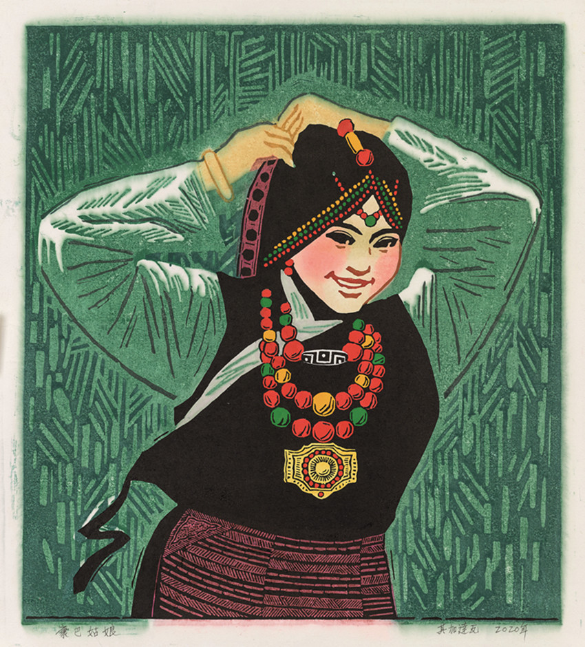 其加達瓦,藏族,1946年生,國家一級美術(shù)師、國務(wù)院特殊津貼專家、中國美術(shù)家協(xié)會會員。曾任中國美術(shù)家協(xié)會理事、廣東省美術(shù)家協(xié)會理事、深圳市文學(xué)藝術(shù)界聯(lián)合會副主席、深圳市美術(shù)家協(xié)會副主席。1964年畢業(yè)于四川美術(shù)學(xué)院民族班;1964年至1984年在四川省美術(shù)家協(xié)會從事專業(yè)美術(shù)創(chuàng)作;1985年至1999年擔(dān)任四川省美術(shù)家協(xié)會秘書長、常務(wù)副主席、四川美術(shù)館常務(wù)副館長;2000年至2006年擔(dān)任深圳畫院常務(wù)副院長;1998年四川電視臺拍攝并播放電視專題片《靈魂的圖騰——訪藏族版畫家其加達瓦》;1999年獲四川省文聯(lián)授予的“德藝雙馨藝術(shù)家”稱號;2001年獲中國美協(xié)、中國少數(shù)民族美術(shù)促進會授予的“民族杰出美術(shù)家”稱號。
