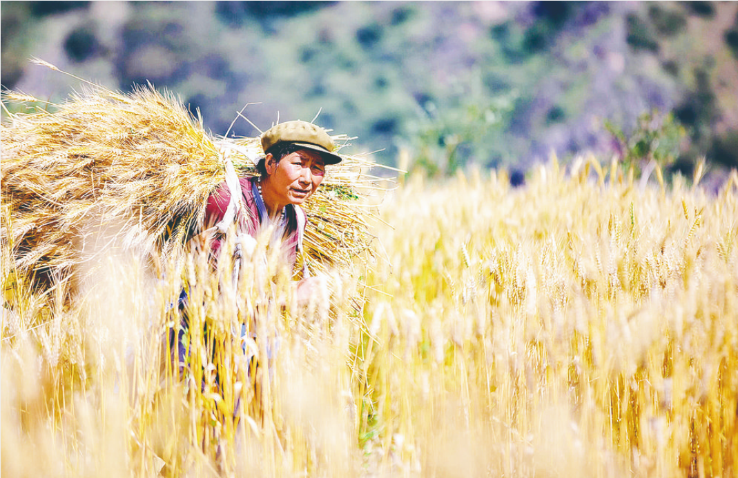我州各地青稞、小麥陸續(xù)進入成熟期,眼下正值“雙搶”關(guān)鍵期。放眼望去,在廣袤的田野上,一片熱火朝天的繁忙景象。村民們頭頂烈日,腳踏泥土,緊張而有序地投入到“雙搶”工作中。新型農(nóng)具為“雙搶”注入強大動力,收割機在田間往來穿梭,一顆顆飽滿的麥粒從倉門傾瀉而下,源源不斷地被送上拖拉機,將成熟的小麥、青稞迅速收割歸倉,展現(xiàn)出一幅喜慶熱鬧的豐收畫卷。