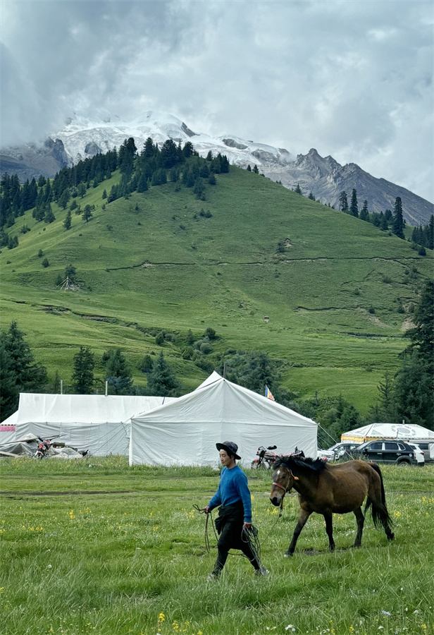 與然日卡村一山之隔的則巴村,是格聶山下另一個(gè)美麗的藏族村莊,這兒的花海最負(fù)盛名,也是觀賞格聶神山的最佳取景地。七月,氣候溫潤(rùn),則巴村高山草甸百花盛開,川木香、川續(xù)斷、漏蘆花、夏枯草……各色叫得出名叫不出名的花草染綠了草地,也妝點(diǎn)了花海,讓則巴村的美景深深地印在了每一個(gè)游人的心底。