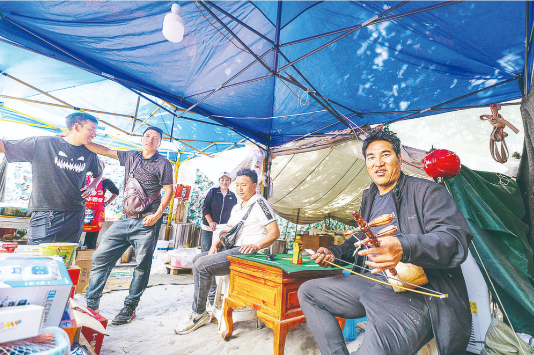 夏邛鎮(zhèn)村民益西一大早就在龍王塘忙碌著,洗菜、切菜、搟面......“又是一年‘央勒節(jié)’,今年還是和往年一樣,一邊過‘央勒節(jié)’,一邊賣冒面?!彼麑⑺{(lán)色帳篷簡單劃分成休息區(qū)、餐食區(qū)、廚房區(qū)3個(gè)區(qū)域,“上午準(zhǔn)備好食材,下午和大家一起迎‘央勒’?!?/p>