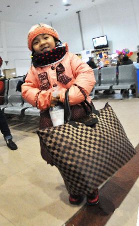 春運(yùn)期間,各地出行的人潮中總能看到隨父母一起踏上返鄉(xiāng)路的孩子們,他們無法體會(huì)到春運(yùn)一票難求、歸程摩肩接踵等帶給大人們的煩惱,掛在臉上的只是或興奮、或好奇的燦爛笑容。新華社發(fā)