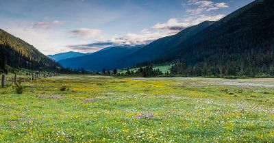 玉科草原面積大而平坦,間以森林,十分迷人,是極為罕見的天然畫卷。號(hào)稱“高原花園”的玉科草原上,矗立著一些保存完好的古石雕,散布著多處宜身的溫泉,點(diǎn)綴著幾個(gè)不大的高山湖泊。