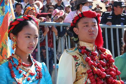 于是,年復(fù)一年,“漢子”與“花”兒們便挺拔、綻放在漢語表達(dá)的一個(gè)極點(diǎn)之上,被玄想,被渴望。對遠(yuǎn)道而來的人們或是世代居于高原的子民而言,康巴漢子與康巴之花不僅僅是美的化身,通過康巴漢子與康巴之花的評比,人們在尋找一個(gè)早已失落卻又天然渾成的世界。
