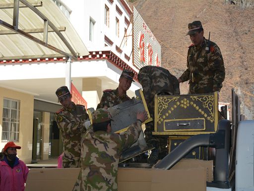 先后深入3縣11個鄉(xiāng)鎮(zhèn)19個村(組)和寺廟,裝卸物資164噸,中轉(zhuǎn)輸送帳篷880余頂,搭建防寒棉帳篷155頂,疏散轉(zhuǎn)移群眾1700余人,搶挖糧食282.3噸,搬運家具1080余件(套),轉(zhuǎn)移牲畜163頭,搶救轉(zhuǎn)移被掩埋車輛11臺,拆除危房3間(約230平方米),轉(zhuǎn)運建筑木材74立方米,為受災(zāi)群眾及師生保障熱飲熱食達(dá)1500余人次。