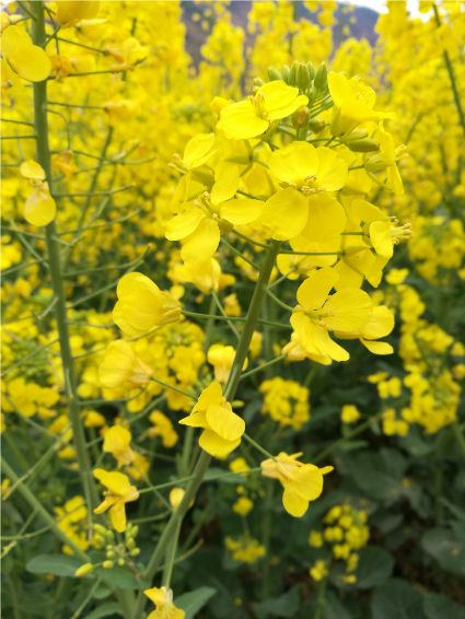 油菜花是我兒時的記憶,外婆為了生計,總會在家門口的幾畝菜地里滿滿當當?shù)姆N上油菜,菜花開的時候,我就會端上一根長板凳、一根方板凳坐在油菜花前寫作業(yè),油菜花的清香伴我度過了整個童年。記得兒時,每逢春季,田野里都會被一簇一簇的油菜花裝扮的金黃,大片的花兒披著一層金裝,偶爾一陣清風,大地上便掀起了片片的漣漪,烈陽下金光燦燦,甚是好看!