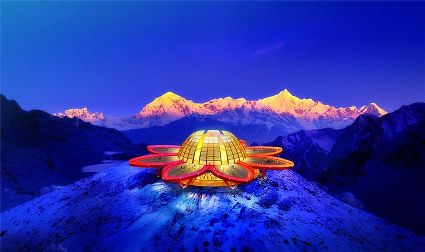 其中“群峰為屏觀景平臺(tái)”為最高點(diǎn),海拔4400米,有全國(guó)海拔最高的咖啡廳,試想下在這里喝著咖啡,欣賞佛光,看著外面云海翻騰,日照金山,仿佛置身在仙境。