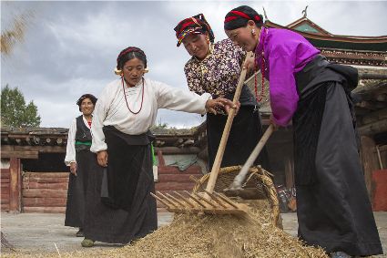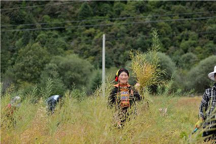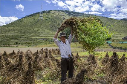 康定市姑咱鎮(zhèn)達(dá)杠村村民李翠軍一邊采摘著蘋果,一邊喜悅地告訴記者,達(dá)杠所產(chǎn)的蘋果個頭大、色澤好、吃味好、耐儲藏,到目前,全村蘋果種植面積800多畝,去年蘋果產(chǎn)量160萬斤,今年雨水好,蘋果產(chǎn)量將猛增到200萬斤以上。目前,村子里蘋果種植大戶家庭年收入過10萬元的就有20多戶??刀ㄊ袑⑦_(dá)杠村打造成川藏觀光農(nóng)業(yè)第一村。按照規(guī)劃,村里會進(jìn)一步擴(kuò)大蘋果種植面積,以蘋果利用為核心,發(fā)展“春賞花、夏攝影、秋摘果、冬體驗”四季觀光農(nóng)業(yè)產(chǎn)業(yè)。五谷豐登六畜興旺,甘孜高原共慶豐收。農(nóng)民豐收節(jié),它既是億萬農(nóng)民慶豐收、曬豐收的節(jié)日,也是全社會享豐收、助增收的節(jié)日;既寄托著農(nóng)民的追求、農(nóng)民的希冀,也承載著全體中華兒女的深情與追憶;中國農(nóng)民豐收節(jié),農(nóng)牧民收獲的不只是甜蜜蜜的果實,鼓起的不只是沉甸甸的荷包,更是滿滿的榮譽(yù)感、幸福感、獲得感!