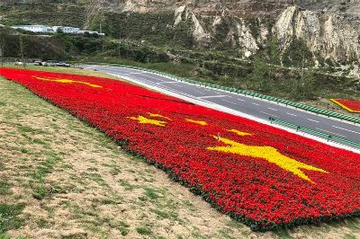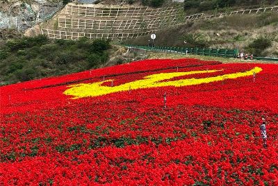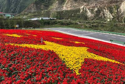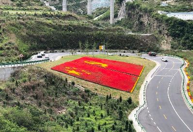7月1日是中國共產黨98周歲的生日。四川甘孜藏族自治州瀘定縣用23萬多株鮮花,在雅康高速路瀘定連接線出口處擺了鮮紅的黨旗、國旗造型,以此表達對黨的感情。