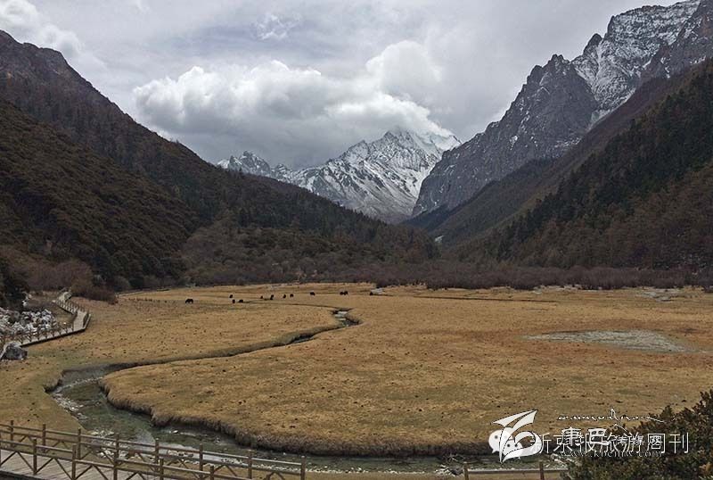 如果一直往里走,可以到達地獄谷,據(jù)說每一片石頭都是刀刻一樣的尖銳,那里還有一座天平,可以稱你善惡的分量。沒有路,只能徒步到達那里??墒俏覀冎皇亲唏R觀花,路上有當(dāng)?shù)厝苏隈W著物資往山里運,這是為挖蟲草季準備的干糧帳篷等等,為了生活,他們將在山里面呆上很長日子,搜尋草地里蠕動微弱的氣息,需要足夠的眼力和耐心汗水。