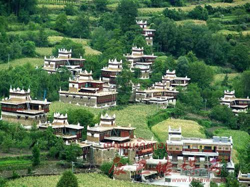 甲居藏寨象群星撒落般坐落在依山傾斜,起伏向上的緩坡上。或星落棋布,或稠密集中,或在高山懸崖上,或在河壩綠茵間,不時(shí)炊煙裊裊,煙云繚繞,搖搖晃晃,若幻若真,真可謂“別有天地非人間。藏寨對(duì)岸,但見萬(wàn)丈絕壁凌空筆立,縱橫連綿的群峰象征一幅幅看不盡的畫廊,每座山峰都有一個(gè)美麗動(dòng)人的神話故事。