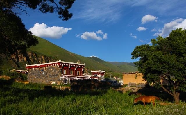走進(jìn)這座別致的高原城市,首先呈現(xiàn)在你面前的就是那鱗次櫛比的藏式民居。這些民居外表主要由棕白兩色構(gòu)成,白色的屋頂,白色的主墻,木結(jié)構(gòu)處多用棕色顏料染涂,其間配以紅色、藍(lán)色圖案,在藍(lán)天、白云、青山、綠水的輝映下,仿佛幻化成妙不可言的積木圖案。這里的民居修得美輪美奐。如果不是親眼見到,還一定會(huì)認(rèn)為這令人眩目的房屋是夢(mèng)境。這就是道孚民居,被譽(yù)為散落人間的仙境皇宮。