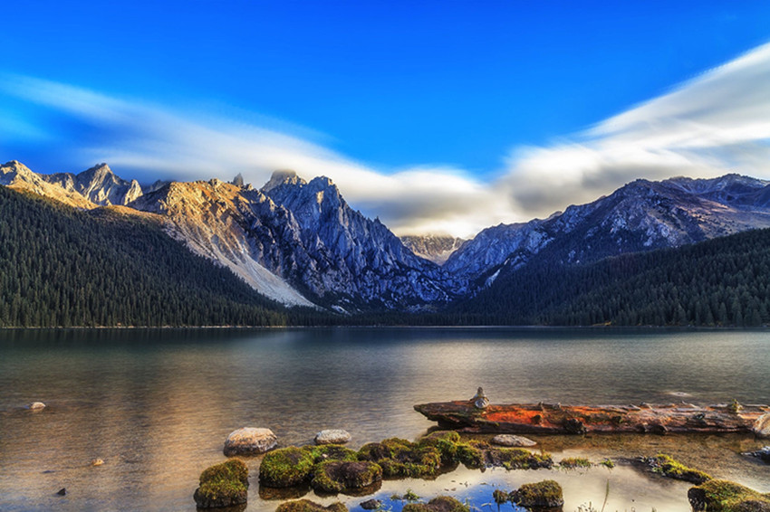措普溝景區(qū)由華山、雪山、湖泊、森林、河流、峽谷、瀑布、溫泉、草原、野生動(dòng)物和寺院等人文景觀組成。巴塘境內(nèi)有一百多個(gè)奇姿異色的湖泊撒落在大地上,這些湖泊中有川西高原最大的措拉湖,也有深邃莫測(cè)的亞莫措根湖,而最秀美的要數(shù)松耳石般碧翠的措普湖。它四面環(huán)山,緊靠峭壁嶙峋、山體裸露、山型奇特?zé)o比的扎金甲博神山,它的正面是5833米的尼特崗日峰,周圍被茂密的原始森林和翠綠草坡環(huán)抱;湖區(qū)景色秀麗嫵媚,波光粼粼的湖面,清碧亮麗的湖水,平靜無(wú)語(yǔ)地置于燦爛陽(yáng)光下。湖邊的森林里有很多珍禽異獸棲息,湖里成群的魚(yú)兒自由穿梭,但人們從不捕殺這些動(dòng)物,千百年來(lái)一直保持著原始生態(tài),環(huán)境十分幽靜,猶如世外桃源。站在插有許多嘛呢經(jīng)幡的湖邊,向湖里發(fā)出“嗚、嗚……”的叫聲,隨著這有節(jié)奏的聲波,鱗光閃閃的魚(yú)群會(huì)蜂擁而至爭(zhēng)搶投下的食物,當(dāng)你把手放入水中,便會(huì)有許多魚(yú)來(lái)“親吻”你的手指,讓你充分感受到人與自然的高度和諧。