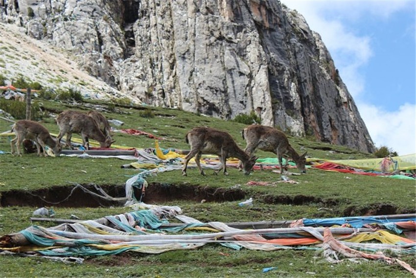 森林中成群結(jié)隊(duì)的盤羊是扎嘎神山的一道風(fēng)景,這里的盤羊遇人不驚,特別是與寺廟的僧人和睦共處,如果你前往扎嘎神山游玩還可看見盤羊在僧人手掌上舔食的動(dòng)人情景。