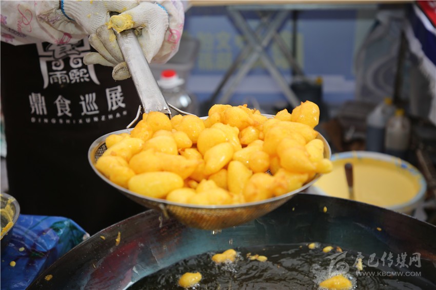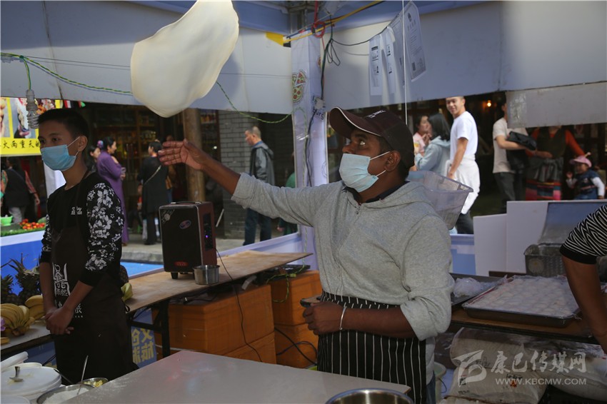 要說美食節(jié)最炫酷的店鋪,那非“印度飛餅”莫屬了。記者穿過層層圍觀的人群,點(diǎn)了一份菠蘿飛餅。只見廚師將捏好的面團(tuán)在案板上揉了幾下,便捏緊面餅一端按順時針方向轉(zhuǎn)動,手里的面餅越轉(zhuǎn)越大,越轉(zhuǎn)越薄,幾近透明,接著就是放餡料,稍做煎炸,切割裝盤,短短一分鐘內(nèi),一氣呵成。記者接過盤,咬下一口,“喀嚓”一聲,再一口就吃到了菠蘿的清香,外層淺黃松脆,內(nèi)層綿軟白皙,略帶甜味,好一個外脆內(nèi)嫩??!嚼起來層次豐富,一軟一脆,口感對比強(qiáng)烈,嚼過之后,齒頰留芳。當(dāng)脆餅撞上菠蘿的清香,就像在夏天突然掉進(jìn)一個水池,清爽又驚喜?!案杏X就是一件的藝術(shù)品啊!”如此的驚嘆聲從人群中迸發(fā)出來。
