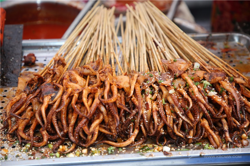 作為一個四川人,對于麻辣味的食物毫無抵抗力,在康定后街林立的商鋪中,記者一眼就相中了“深海魷魚花”這家店。看著泛著紅油的魷魚花靜靜地躺在紅椒和芹菜間,記者咽了咽口水,向老板買了一份兒?!罢媸羌兗兊拇ㄎ秲簺]錯了,又麻又辣的?!庇浾邔习逭f。老板回答到:“魷魚花最講究的就是刀法了,要切得好看。雖然在顧客看來都差不多樣子,但是我每次都要經(jīng)過細(xì)細(xì)斟酌再一刀一刀的切,爭取多弄幾種樣式,現(xiàn)在我的常客們也會細(xì)細(xì)地考究我切的魷魚花了。以前我只賣烤魷魚,只是在家里偶爾會給我兒子做魷魚花,后來看我兒子喜歡吃,才開始慢慢地賣魷魚花,沒想到還是很受歡迎。這次美食節(jié),我發(fā)現(xiàn)沒有人做魷魚花,所以我就帶著我兒子喜歡的魷魚花來參加這次美食節(jié)了?!崩习逍χ浾哒f。