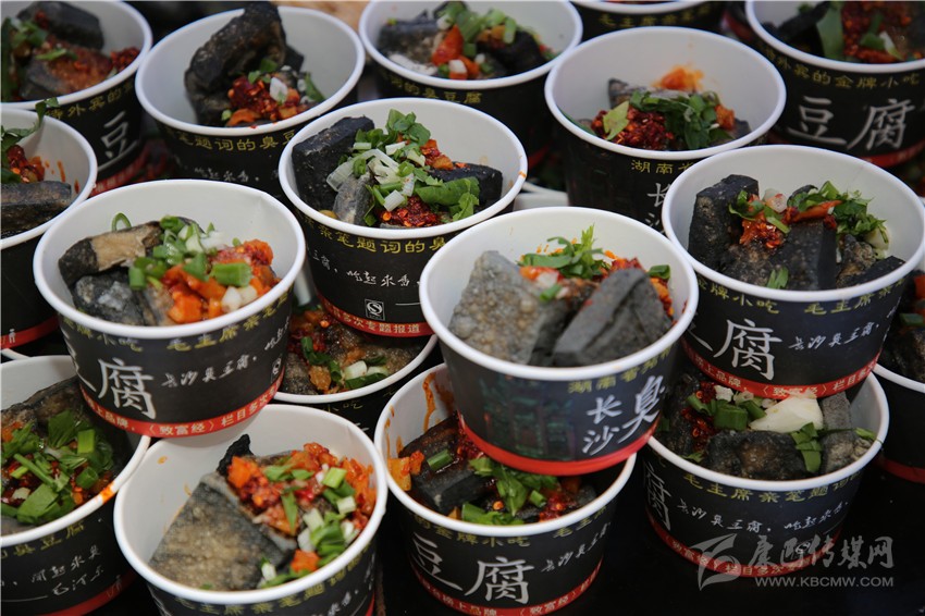 “長沙臭豆腐,毛主席親自點(diǎn)評的長沙臭豆腐……”一陣陣吆喝聲從遠(yuǎn)處傳來,記者心想,臭豆腐,大概還是算長沙的味道最正宗吧。還沒走近,一陣逗人味蕾的氣味便傳進(jìn)了記者的鼻子,記者的口水再也包不住了,便徑直跑向臭豆腐售賣點(diǎn),一個個臭豆腐堆積如山,正在等待裝盤澆汁。周圍也圍滿了想要一嘗滋味的食客。