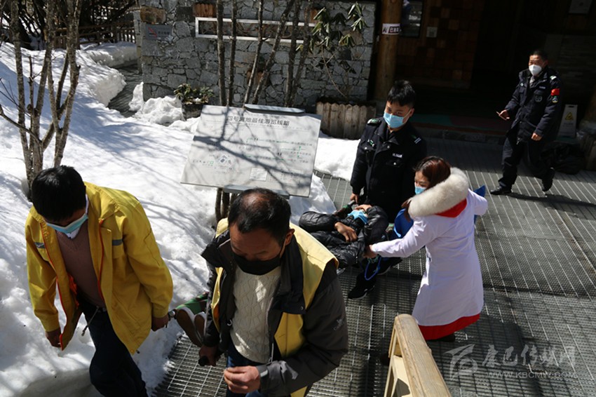 采訪期間,一場(chǎng)應(yīng)急演練讓記者見(jiàn)證了海螺溝景區(qū)疫情應(yīng)急處置的速度:醫(yī)生和民警們配合默契,醫(yī)生立即對(duì)疑似患者進(jìn)行輸氧,而后和民警一起用擔(dān)架將患者送進(jìn)位于索道站旁邊的隔離室,整個(gè)過(guò)程僅幾分鐘。海螺溝景區(qū)管理局營(yíng)銷處負(fù)責(zé)人告訴記者,早在1月29日,海螺溝景區(qū)黨委就在研究部署復(fù)工復(fù)產(chǎn)的問(wèn)題,派出相關(guān)負(fù)責(zé)人到周邊景區(qū)學(xué)習(xí)疫情防控和復(fù)工復(fù)產(chǎn)的經(jīng)驗(yàn)做法。2月4日,海螺溝景區(qū)安排復(fù)工復(fù)產(chǎn)籌備推進(jìn)會(huì),要求工程項(xiàng)目和旅游企業(yè)全力做好防疫物資儲(chǔ)備、落實(shí)防控預(yù)案、對(duì)經(jīng)營(yíng)場(chǎng)所進(jìn)行消毒和環(huán)境衛(wèi)生大整治,要求大型酒店企業(yè)做好率先開(kāi)工的準(zhǔn)備,并多次開(kāi)展疫情防控聯(lián)合演練,提高了景區(qū)疫情應(yīng)急處置能力。