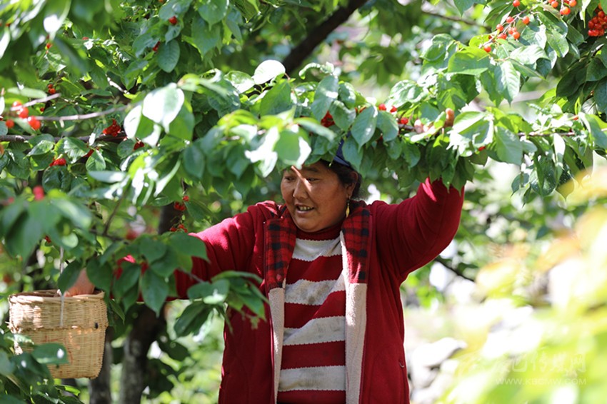 “樹上的恩桃兒隨便摘、敞開吃!”板板橋農(nóng)家樂老板鄧安美熱絡(luò)地招呼著客人,忙碌中掩飾不住內(nèi)心的喜悅?!斑@周末14個(gè)房間全部訂滿,午餐、晚餐也已經(jīng)訂了40桌?!睋?jù)了解,今年紅櫻桃節(jié)活動(dòng)開始前一周,瀘定縣內(nèi)及紅櫻桃節(jié)舉辦地杵坭村周邊的酒店、民宿就已供不應(yīng)求。漫山遍野間,一串串已經(jīng)成熟的櫻桃在燦爛陽光的照耀下,紅艷欲滴;農(nóng)家樂里,樹下擠滿了三五成群的游客,有的邊摘邊吃,有的喝茶聊天,好不悠然自怡。