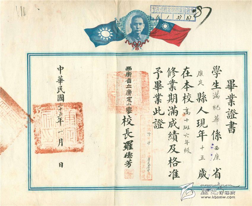 這里的幾份畢業(yè)證書,有由“國立康定師范學(xué)校”所頒發(fā) 畢業(yè)證,也有由小學(xué)校頒發(fā)的小學(xué)畢業(yè)證。通過這些畢業(yè)證,讓今天的人們也能感受到在那個時期,西康地方的學(xué)校教育十分正規(guī),也就是那個時期畢業(yè)的許多學(xué)生,成為了新中國成立后,建設(shè)社會主義新藏區(qū)的一支重要力量。