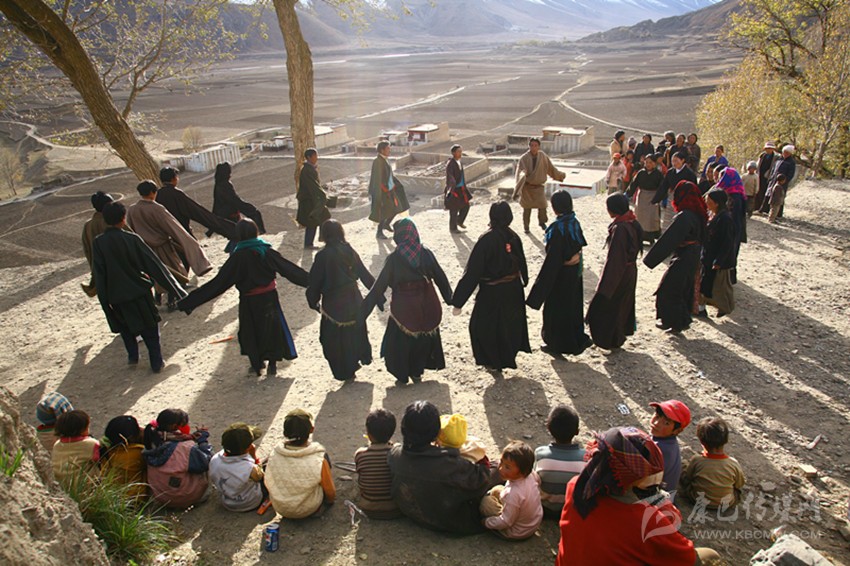 弦子又名為“協(xié)”,在甘孜縣境內(nèi)有孔薩協(xié)欽、仲薩協(xié)、格達(dá)協(xié)、郎扎協(xié)等,其中白利寺五世格達(dá)活佛創(chuàng)建于二十世紀(jì)三、四十年代的格達(dá)弦子尤為著名,跳此舞無時(shí)間規(guī)定。起初用此歌祭祀亡魂、超度靈魂、免荒災(zāi)。以后逐漸豐富其內(nèi)容而流傳于民間。表演時(shí)無伴奏樂器,起舞時(shí),男女兩隊(duì)輪歌共舞,圍成圓圈,相對(duì)而立,男女舞者統(tǒng)一著樸素藏裝,男舞者抬頭,頭戴金氈帽, 身著“氆氌”衣,但不配戴腰刀;女舞者低頭,扎小辮子,身著“氆氌”衣,腳穿藏鞋,沿著弧線,先慢后快,邊歌邊舞,舞蹈的腳步動(dòng)作矯健,帶有“夏卓”的風(fēng)韻。格達(dá)活佛的詩歌,具有藏族文學(xué)的新內(nèi)容和新思想,每當(dāng)節(jié)日人們就在優(yōu)美的旋律中盡情起舞,格達(dá)弦子的詞、曲均由格達(dá)活佛創(chuàng)作。