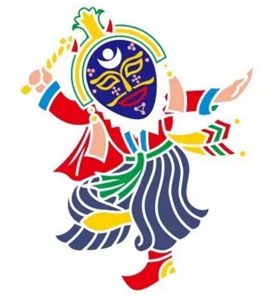 第三部分,被稱為“扎西學(xué)”。頭戴白羊皮面具,面部呈黃色的演員們是吉祥老人的化身。他們雖然老態(tài)龍鐘,但動(dòng)作卻輕盈無(wú)比。其裝束除了腰間纏繞的“子體”未掛五色彩綢外,與“溫巴”別無(wú)二致。他們?cè)跉g樂的舞動(dòng),向眾人賜福吉祥。