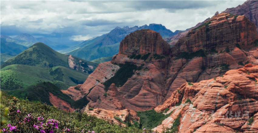 “快看,紅山千年之吻?!币晃挥浾咴隈R背上驚呼。抬頭望去,兩座紅山緊依而立,伴隨藍天、白云與綠草,構(gòu)成一幅絕妙美景圖;在距丹霞地貌最近的埡口處,大家紛紛下馬觀賞丹霞風光?!皦延^震撼、鬼斧神工”,專家學者無不驚嘆贊絕倫,即便天氣不佳,海拔較高,他們時而交流討論、時而拍照留戀,高昂情緒一直持續(xù)。