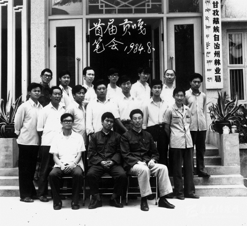 我們也在籌備,這就是《貢嘎山》雜志創(chuàng)辦以來的第一次筆會。根據(jù)當(dāng)時我州作者的創(chuàng)作情況,編輯們商議決定搞一次筆會,這次筆會以小說創(chuàng)作為主。當(dāng)時我州的詩歌創(chuàng)作非常活躍,很多從學(xué)校出來參加工作的年青作者都很喜歡詩歌創(chuàng)作,創(chuàng)作水平也還不錯,而且還活躍著很多的文學(xué)社團(tuán),散文寫作的人也不少,唯獨就是小說創(chuàng)作始終在作者人數(shù)和質(zhì)量上都達(dá)不到刊物的要求。針對這種現(xiàn)狀,我們對當(dāng)時發(fā)表和寫過小說的所有作者都進(jìn)行統(tǒng)計,并發(fā)出了參加筆會的約稿信,并決定1984年8月在康定姑咱鎮(zhèn)林業(yè)管理局招待所舉辦首屆《貢嘎山》筆會,通過近一年的準(zhǔn)備,檢視作者來稿情況確定了18位作者(一名女作者)參加首屆《貢嘎山》筆會,他們是仁真旺杰、高旭帆、胡杰、劉富貴、王浩東、宋濤、格妮措、杜仁信、王方霖、劉述義、孫浩東、牟子、朱長安等,郭昌平參加了開班后有事走了,給我們留下這張珍貴的合影照片。
