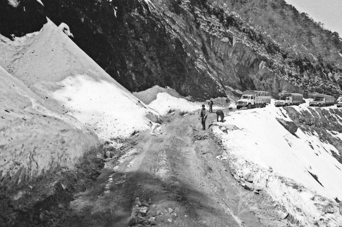 也就是在這一年,我們幾經(jīng)周折,終于聯(lián)系到了遠在北京的翟新莉女士。當年修筑二郞山公路時,翟女士的父親翟壽亭時任162團政委,既是指揮者,也是親歷者。聽過自我介紹,素未謀面、素昧平生的翟女士爽快答應,積極支持,不僅寄來《從豫皖蘇到康藏高原》一書,還發(fā)來了父親留下的一組珍貴照片。照片上,齊腰深的大雪讓人不寒而栗,四面透風的工棚使人倍感覺艱辛。心懷敬仰的閱讀中,一座座大山撲面而來,二郞山、折多山、雀兒山上,戰(zhàn)天斗地的故事驚天地泣鬼神。