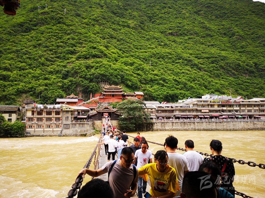 瀘定橋上游人如織。