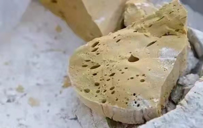 只聽大伯一聲大喝“出糖”,便有人迅速端過鋪有一層熟面粉的簸箕,大伯退到一旁休息,二伯眼疾手快拿起瓢便把黏稠的糖漿往簸箕中舀。