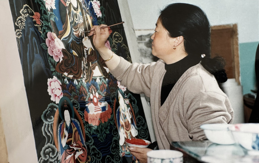 翔秋志瑪(又名王芳馨),這位在新中國成立后,成長起來的畫家,打破了女性不能畫唐卡的舊規(guī),將古老的藝術(shù)與藏民族現(xiàn)代的生活相結(jié)合,開創(chuàng)了我州藏畫的新局面。