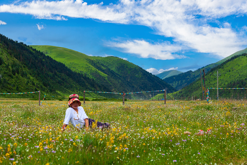 玉科,白猞猁皮鋪展開的長(zhǎng)長(zhǎng)山谷,依尼山是其心臟,扎拉山脈是其頭,噶科河、瑪科河是其雙臂,惹智塘和曲赤塘是其胸膛,革科和慶切科是其雙腳,措達(dá)以下則是其尾。這片山川地勢(shì),晶瑩的雪峰、郁郁蔥蔥的林海、翠綠的草甸,清澈的碧湖,湛藍(lán)如洗的天空、潔白的云朵,棲息著豐富的珍稀動(dòng)植物,構(gòu)成了一幅如詩如畫、動(dòng)人心魄的原生態(tài)畫卷。一年四季景致千姿百態(tài),美不勝收。夏三月,百花盛開,大地鋪展五彩錦緞。秋三月,一片金黃,映襯得山崗黃燦燦。冬三月,雪花翻飛,大地銀裝素裹。難怪旅游達(dá)人們要驚呼,贊美這里是甘孜的阿勒泰。