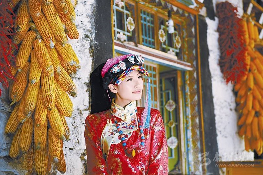 不知什么時(shí)候丹巴已被古碉?藏寨?美人谷這個(gè)名詞所取代。誠(chéng)然,丹巴有歷經(jīng)蒼桑歲月仍傲然屹立于荒草萋萋之中的古碉,也有散落在田間地頭的白色藏房,它們用歲月遺留下來(lái)的符號(hào)無(wú)言地訴說(shuō)著古老的過(guò)去。就在這美麗的土地上,綠水青山環(huán)繞中,充滿靈氣的古碉藏寨交相輝映,呈現(xiàn)出一幅天人合一的絕妙畫(huà)卷。也許是上天特別垂青于這塊土地吧!丹巴自古以來(lái)美女如云,一代代優(yōu)雅端莊,心靈手巧的姑娘,身著自已繡織的衣服,甩動(dòng)如云的繡帕,舉手投足間自有一番清雅高華的氣質(zhì),盡顯東女國(guó)后裔風(fēng)范。