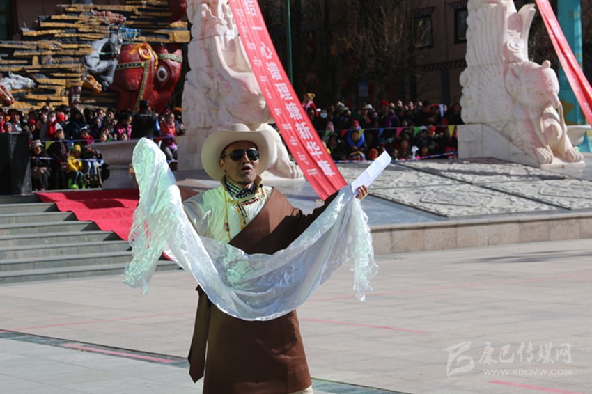吉祥頌,藏語(yǔ)稱為“協(xié)巴”,是州級(jí)非物質(zhì)文化遺產(chǎn)之一?!皡f(xié)巴”在藏族民間生活中占有重要的地位,尤其在喜慶活動(dòng)上,是一項(xiàng)不可或缺的重要儀式。州級(jí)非物質(zhì)文化遺產(chǎn)傳承人——高城鎮(zhèn)車馬村的翁堆老人手捧潔白的哈達(dá),為觀眾表演了《協(xié)巴——中國(guó)夢(mèng)、理塘夢(mèng)》,展現(xiàn)了時(shí)代變遷中,“吉祥頌”這一民間藝術(shù)在思想內(nèi)容和藝術(shù)手法的創(chuàng)新之美。