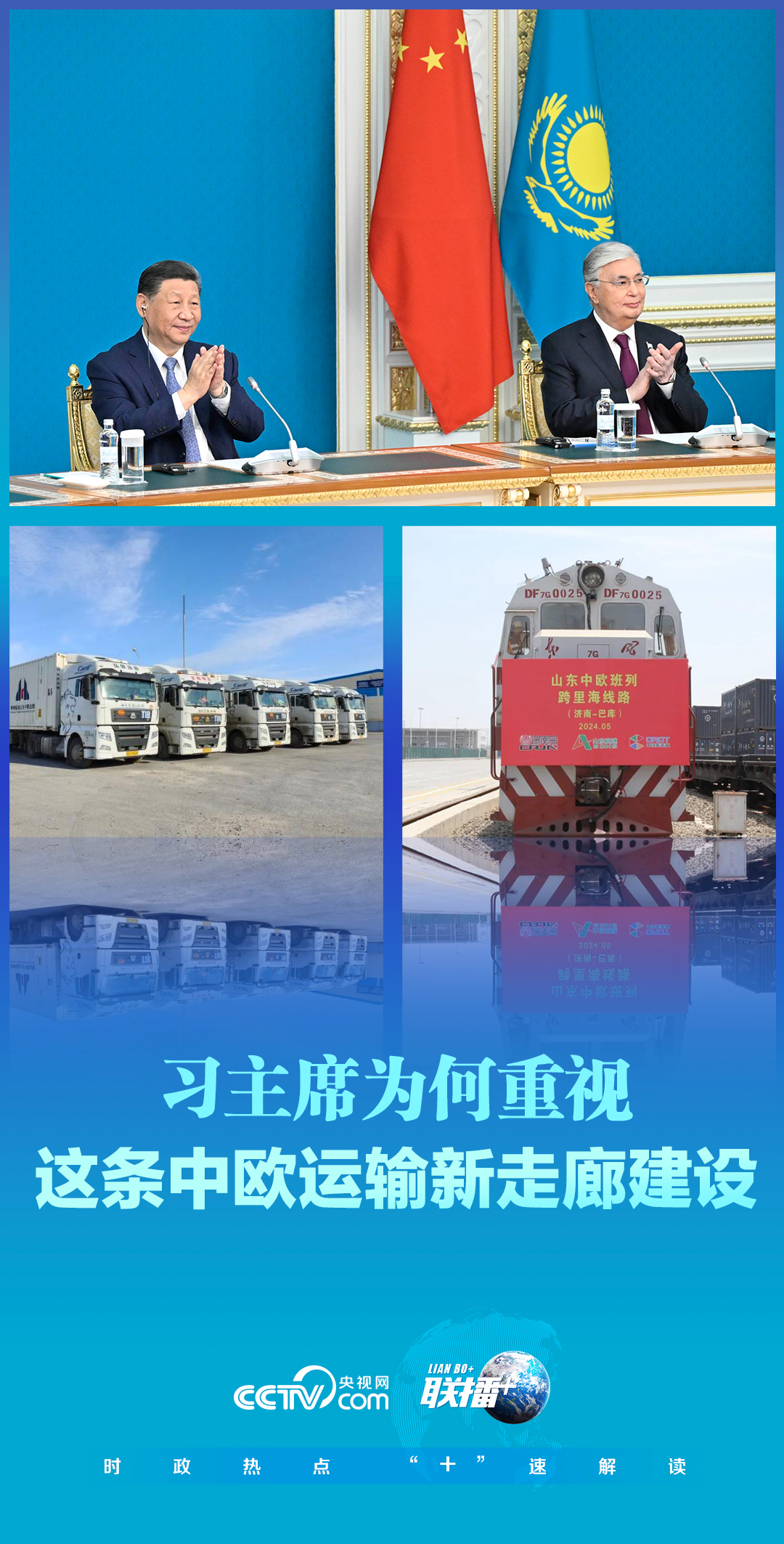 7月3日,正在哈薩克斯坦訪問(wèn)的習(xí)近平主席同托卡耶夫總統(tǒng)以視頻方式共同出席中歐跨里海直達(dá)快運(yùn)開(kāi)通儀式。兩國(guó)元首共同下達(dá)作業(yè)指令。