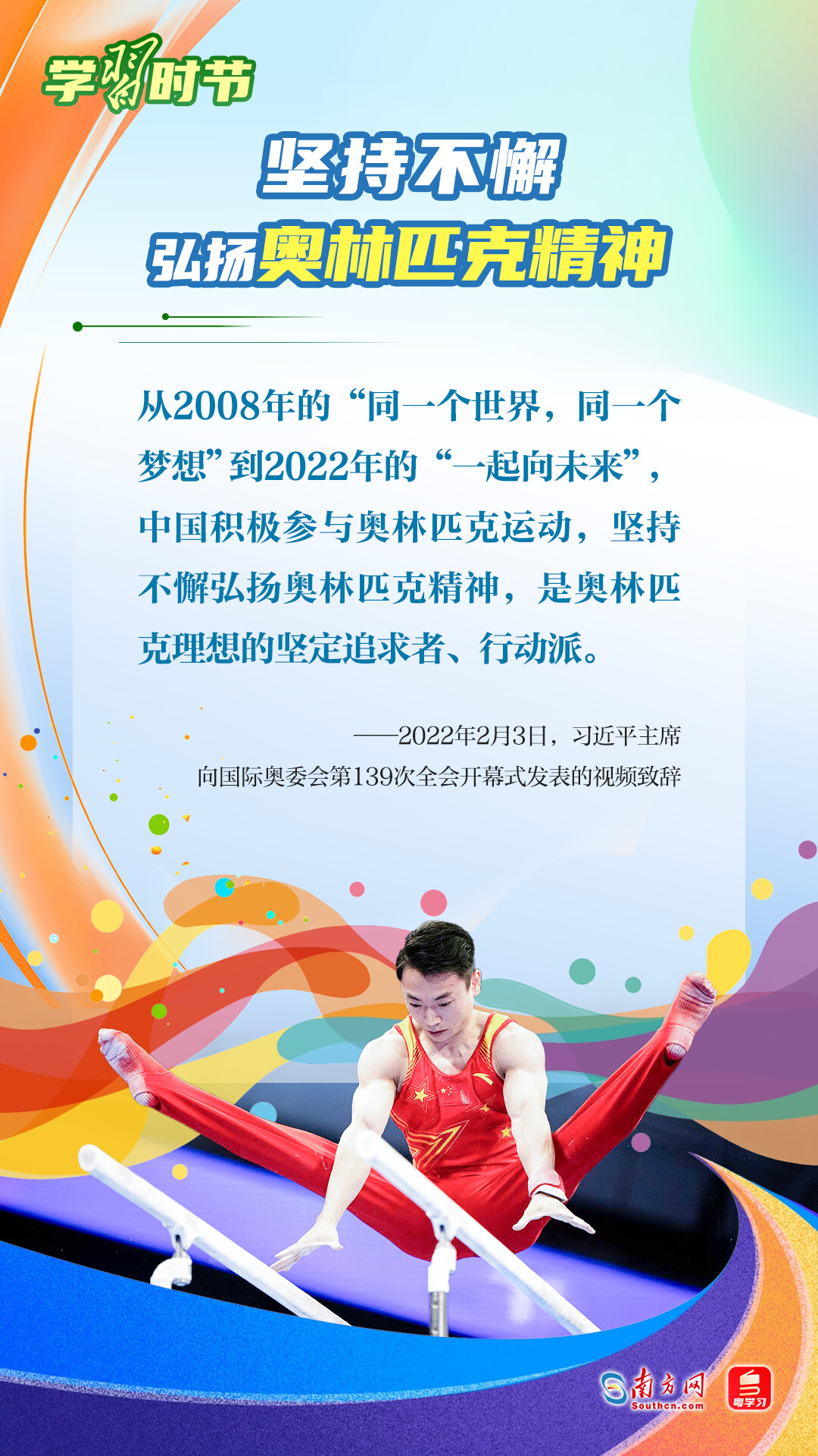 “我們不以勝負(fù)論英雄,同時(shí)英雄就要敢于爭先、敢于爭第一?!绷?xí)近平總書記曾在不同場合論述奧林匹克精神,深刻闡明了勝與負(fù)、成與敗的辯證關(guān)系,對奧林匹克“更快、更高、更強(qiáng)——更團(tuán)結(jié)”的格言進(jìn)行詮釋。讓我們一同學(xué)習(xí)習(xí)近平總書記對奧林匹克精神的重要論述,心懷夢想、奮勇拼搏,攜手走向美好明天。