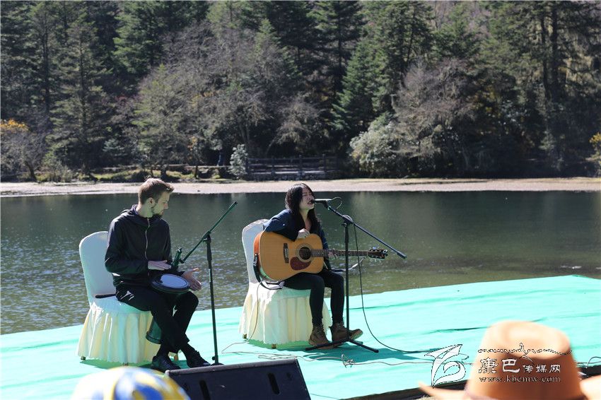 深秋的木格措,漫山遍野披上了金色的外套,七色海也被陽(yáng)光撒上了一層斑斕的“魚鱗”,泛著星光,很難想象這副如畫的風(fēng)景和不插電音樂將會(huì)碰撞出怎樣的火花。