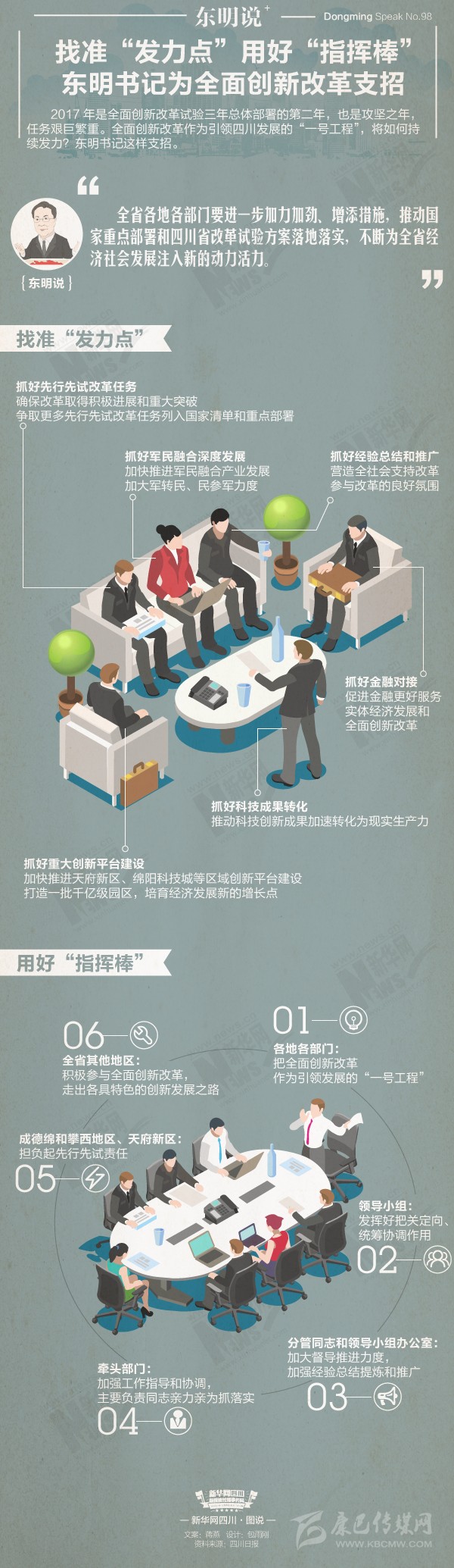 2017年是全面創(chuàng)新改革試驗三年總體部署的第二年,也是攻堅之年,任務(wù)艱巨繁重。全面創(chuàng)新改革作為引領(lǐng)四川發(fā)展的“一號工程”,將如何持續(xù)發(fā)力?王東明書記這樣支招。