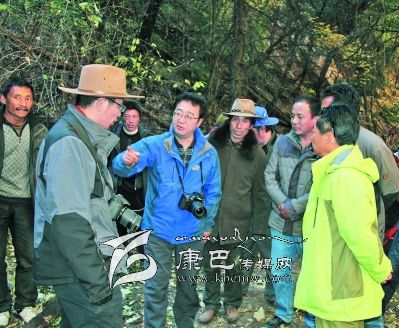 10日早上8點30分,益西達瓦又率隊騎馬從卡斯村進入卡斯谷。一進谷口,大家就被谷口小巧別致的巖溶鈣化彩池、千年古樹沖天柏所震撼。據(jù)說谷口沿線還有古冰川的遺跡,是雪峰、冰川、海子、瀑布、溫泉的共融體,國家二類保護植物干香柏,藥用植物蟲草、貝母、黃芪、大黃等也非常豐富。面對谷內(nèi)五彩繽紛的山色、野性激蕩的溪流、挺拔粗壯的古樹、枝椏橫溢的叢林、結實樸拙的木橋、壁立千仞的懸崖,考察隊員不禁驚呼:“這不就是阿凡達的故鄉(xiāng)嗎?”益西達瓦時而騎馬,時而步行,一邊察看景致,一邊興高采烈的與同行考察隊員和縣鄉(xiāng)村干部交談。景區(qū)怎樣規(guī)劃?怎樣建設?怎樣宣傳?景區(qū)取什么名字?為景區(qū)賦予什么樣的文化靈魂?哪里修棧道?哪里架索道?哪里修觀光電梯?都一一指導,清晰地勾畫了卡斯谷開發(fā)藍圖。