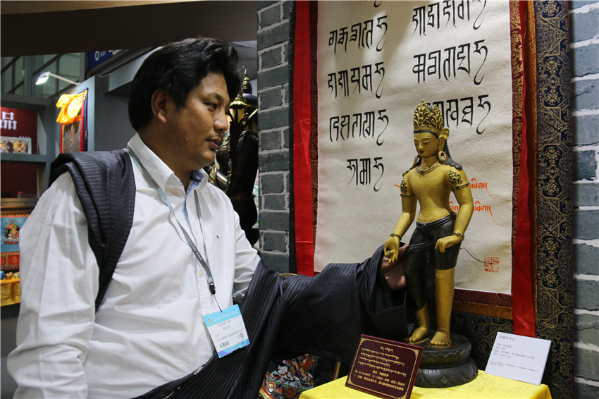 “三天來(lái),市民了解工藝品的多,購(gòu)買的不是很多,但也有采購(gòu)意向協(xié)議的?!比斩鄬?duì)記者說(shuō),作為獨(dú)具特色的藏族非物質(zhì)文化遺產(chǎn),為搶救這一特殊工藝技術(shù),我們公司在州委、州政府和縣委、縣政府以及州縣兩級(jí)文化部門的關(guān)心支持下,從2000年開(kāi)始恢復(fù)董察花色青銅的加工工藝,開(kāi)發(fā)了上百種精神文化類產(chǎn)品、生活使用類產(chǎn)品、美飾擺設(shè)類產(chǎn)品以及演奏樂(lè)器類產(chǎn)品。