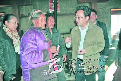 ↑州人大常委會(huì)主任李康在爐霍縣蝦拉沱村調(diào)研。
