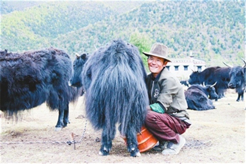 鄧珠澤榮一家多年前從道孚縣八美鎮(zhèn)移居到各卡鄉(xiāng),因為在村上沒有分到土地,家里的開銷都靠政府的福利政策和挖蟲草、采松茸的收入,只能勉強度日。去年,該縣康巴渠德農(nóng)牧事業(yè)發(fā)展合作社與該村達成了定點收購牛奶的協(xié)議,鄧珠澤榮依靠政策的支持成為了一名養(yǎng)牛戶。2017年,他養(yǎng)了50多頭奶牛。光是賣奶制品的收入就有近十萬元;村合作社的5畝高原草莓,產(chǎn)值近12萬元,他家從中獲得了幾千元的勞務收入和分紅收入。有了這兩項收入,鄧珠澤榮一家迅速由特困戶過上了小康生活。