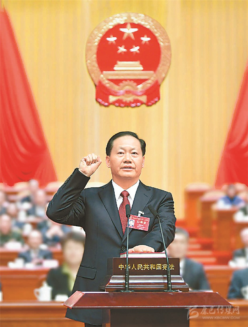 隨后,舉行憲法宣誓儀式。彭清華走上宣誓臺,左手撫按憲法,右手舉拳,面向全體人大代表莊嚴宣誓。新當選的省十三屆人大常委會委員以及省第十三屆人民代表大會監(jiān)察和司法委員會、社會建設委員會主任委員、副主任委員、委員也進行了憲法宣誓。