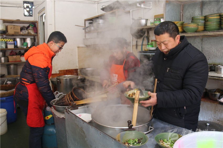 楊紅清一家在康定南郊經(jīng)營面館已有8年。8年來,他一直堅持春節(jié)照常營業(yè),正月十五再回家與親友團(tuán)聚。正因為年年春節(jié)不休業(yè)也不漲價,老楊的面館積累了很多熟客。被問道春節(jié)照常營業(yè)的原因,楊紅情說:“無論什么時候,吃飯都是人最基本的需要,有些人因為各種原因,過年找不到地方吃飯,我家的面條也許就是某人的團(tuán)年飯,所以自己辛苦一點也很高興。另外,我的家人都在這里,店里忙完,一家人一起做年夜飯,然后一起吃,也很高興?!?/p>